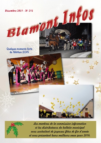 o Décembre 2015 - N 251 Quelques moments forts du Téléthon 2015 Les membres de la commission information et les distributeurs du bulletin municipal vous souhaitent de joyeuses fêtes de fin d’année et vous présentent leurs meilleurs vœux pour 2016.