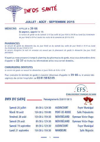 Samedi 25 juillet 8h30 à 12h30 AUDINCOURT Foyer Municipal