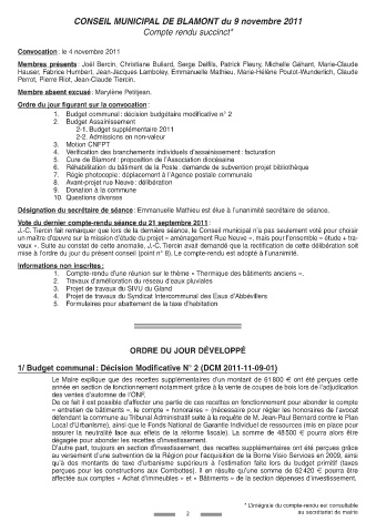 CONSEIL MUNICIPAL DE BLAMONT du 9 novembre 2011