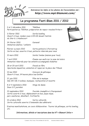 Le programme Festi-Blam 2011 / 2012