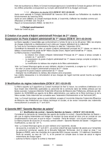 Suppression du Poste d'adjoint administratif de 1 ère classe (DCM N° 2011-02-24-04)
