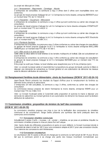 communal et du columbarium. Serge Delfils présente une synthèse des tarifs pratiqués dans les