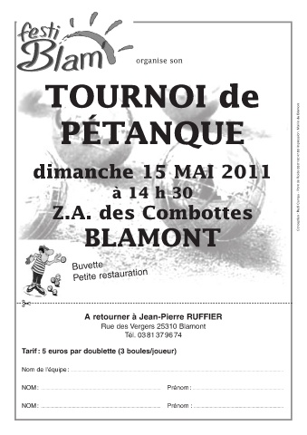 Tarif: 5 euros par doublette (3 boules/joueur)