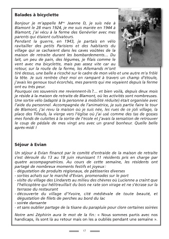 je réside à la maison de retraite de Blamont, où les activités sont nombreuses.