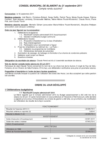 CONSEIL MUNICIPAL DE BLAMONT du 21 septembre 2011