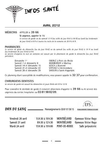 DON DU SANG Renseignements 0381615615