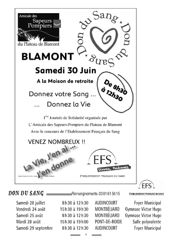 Samedi 28 juillet 8h30 à 12h30 AUDINCOURT Foyer Municipal