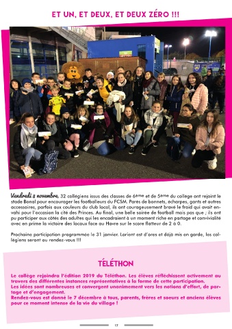 Le collège rejoindra l’édition 2019 du Téléthon. Les élèves réfléchissent activement au