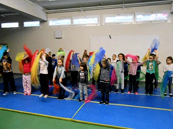 des foulards, des cerceaux. Equilibre sur des