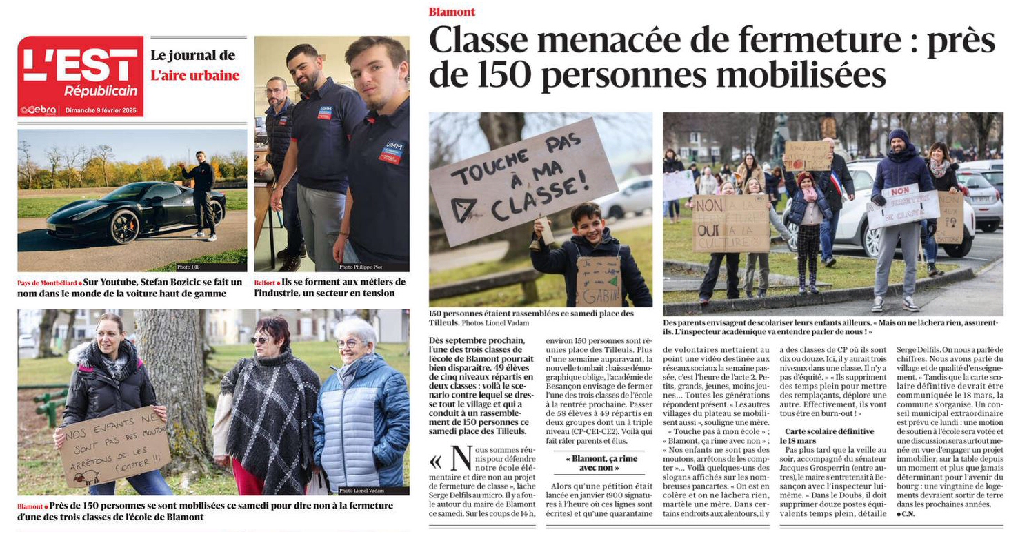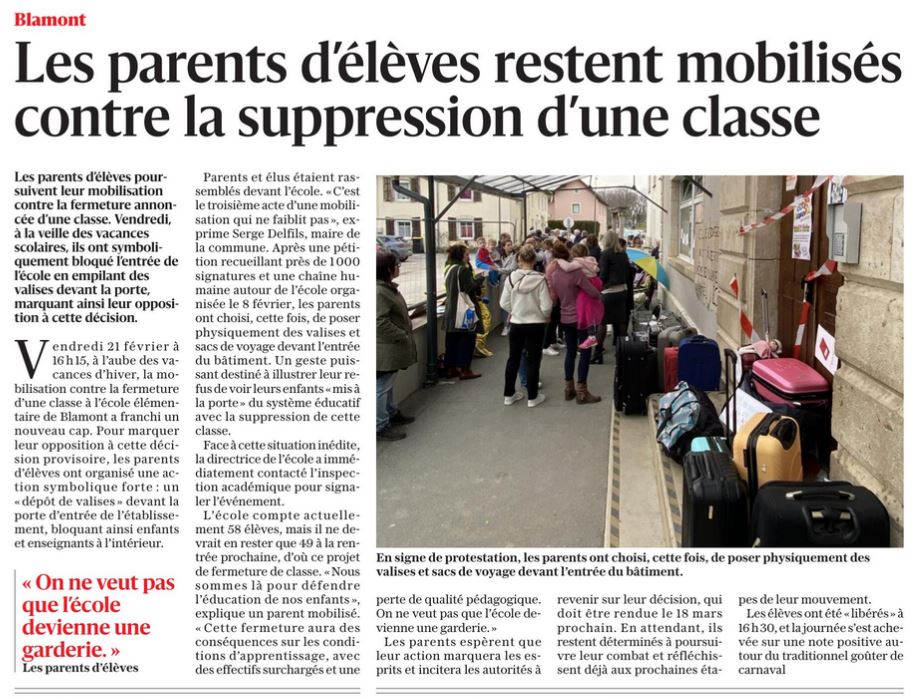 fermeture d'une classe dans notre école de Blamont.