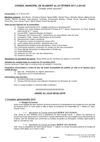 CONSEIL MUNICIPAL DE BLAMONT du 24 FÉVRIER 2011 à 20h00