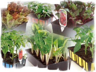 massif, suspensions, plants de légumes et autres herbes